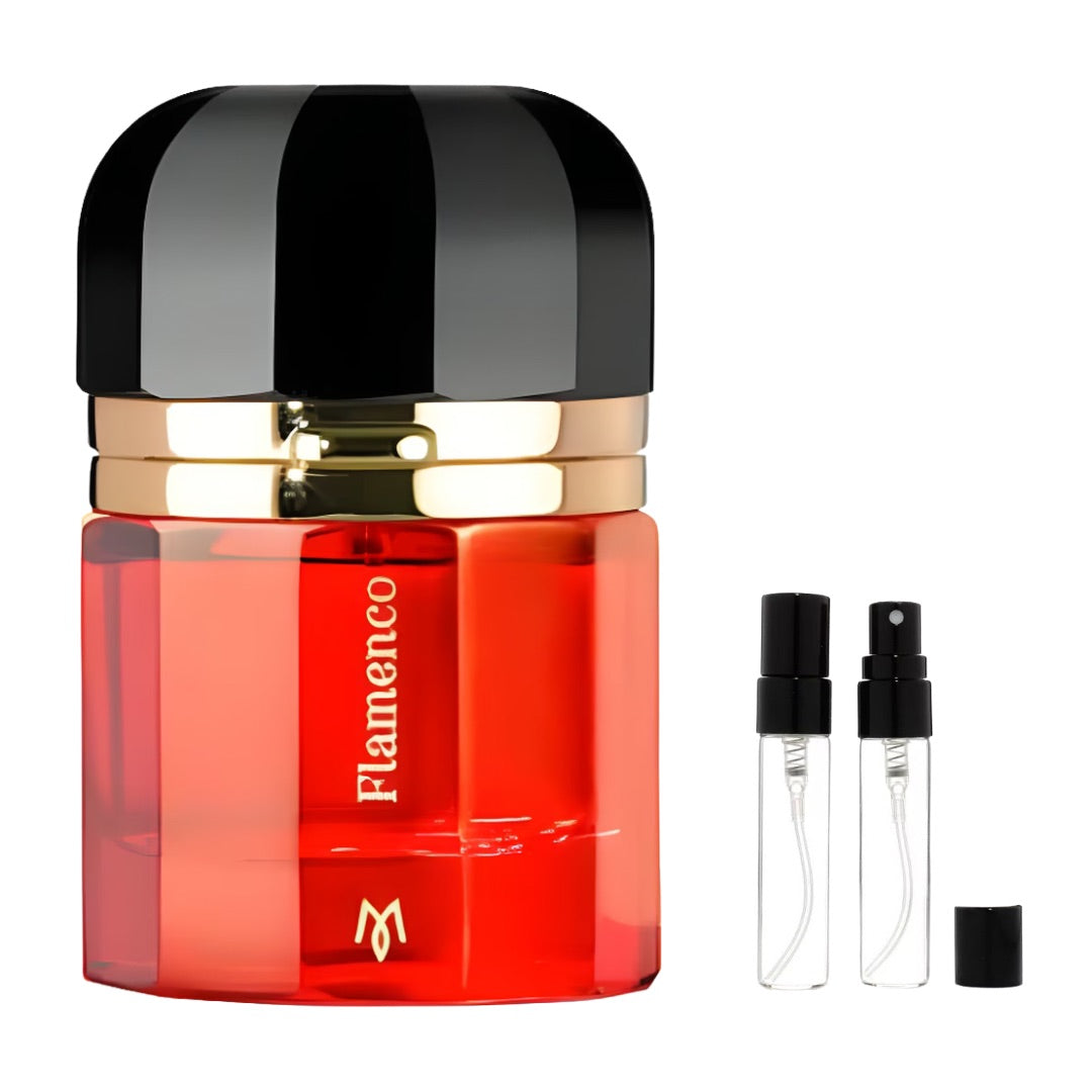 Experience the exotic scent of Flamenco by Ramon Monegal. A captivating blend of raspberry, apple, violet, and orange blossom on top, with a heart of rose, iris, and jasmine, and a base of cedar, cypress, pine tree, and amber. Perfect for both women and men, this oriental floral fragrance was expertly crafted by the renowned nose, Ramon Monegal. Available in sizes 2ML to 10ML.
