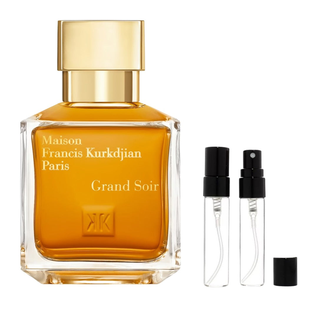 Indulge in the warm and sensual scent of Grand Soir by Maison Francis Kurkdjian. This Oriental fragrance for women and men features notes of Spanish Labdanum, Lavender, and Vanilla, creating a decadent and alluring aroma. With a hint of musk and cedar, this fragrance will leave you feeling confident and irresistible. Try it in a convenient 2mL to 10mL decant.