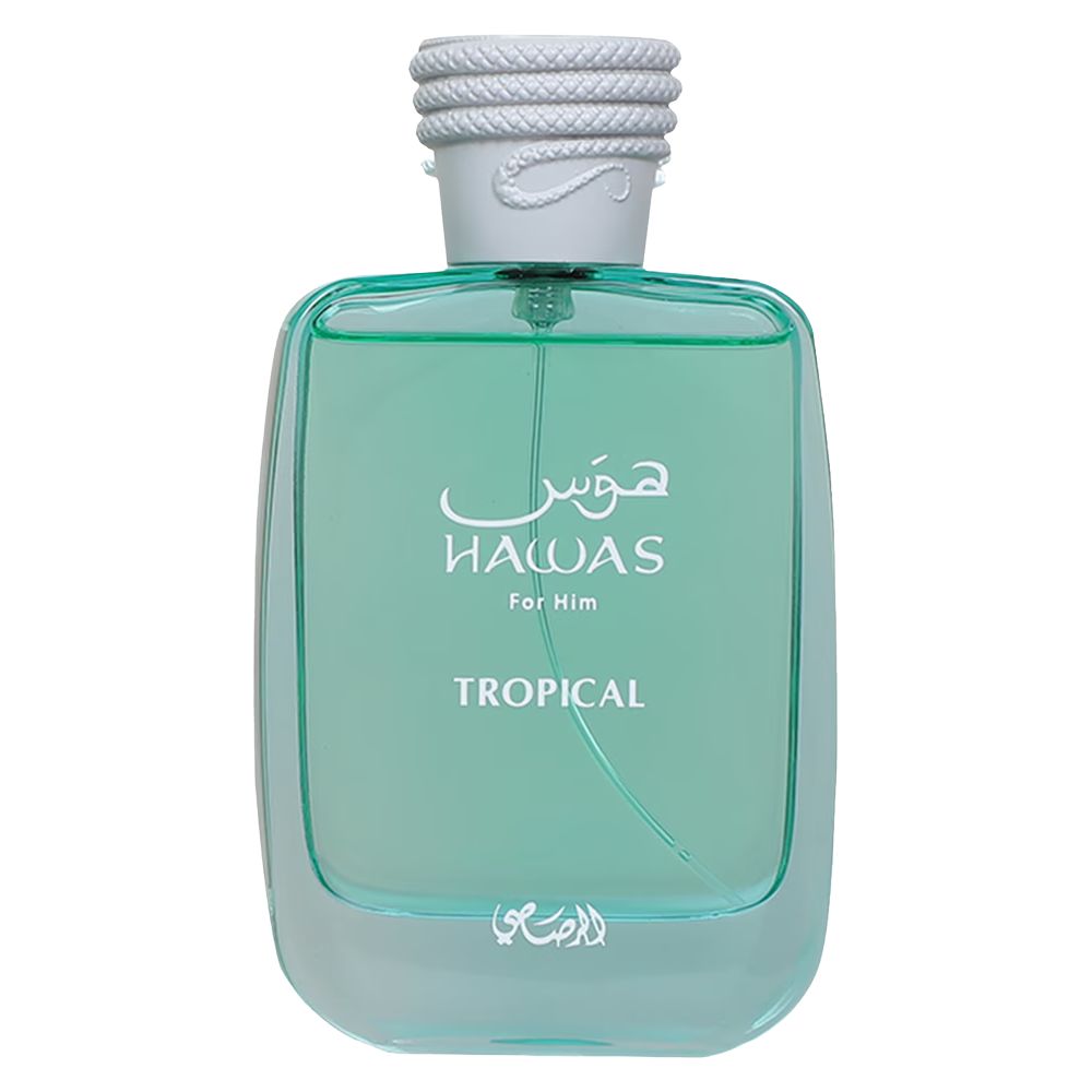 Experience the refreshing and tropical scent of Hawas Tropical by Rasasi. This new Aromatic Green fragrance for men will transport you to a paradise of Coconut Water, Ginger, and Fig Leaf top notes. The heart notes of Coconut, Fig, and Mint add a touch of sweetness while the base notes of Sandalwood, Tonka Bean, and Musk provide a warm and lasting finish. Bring a touch of the tropics with you wherever you go.