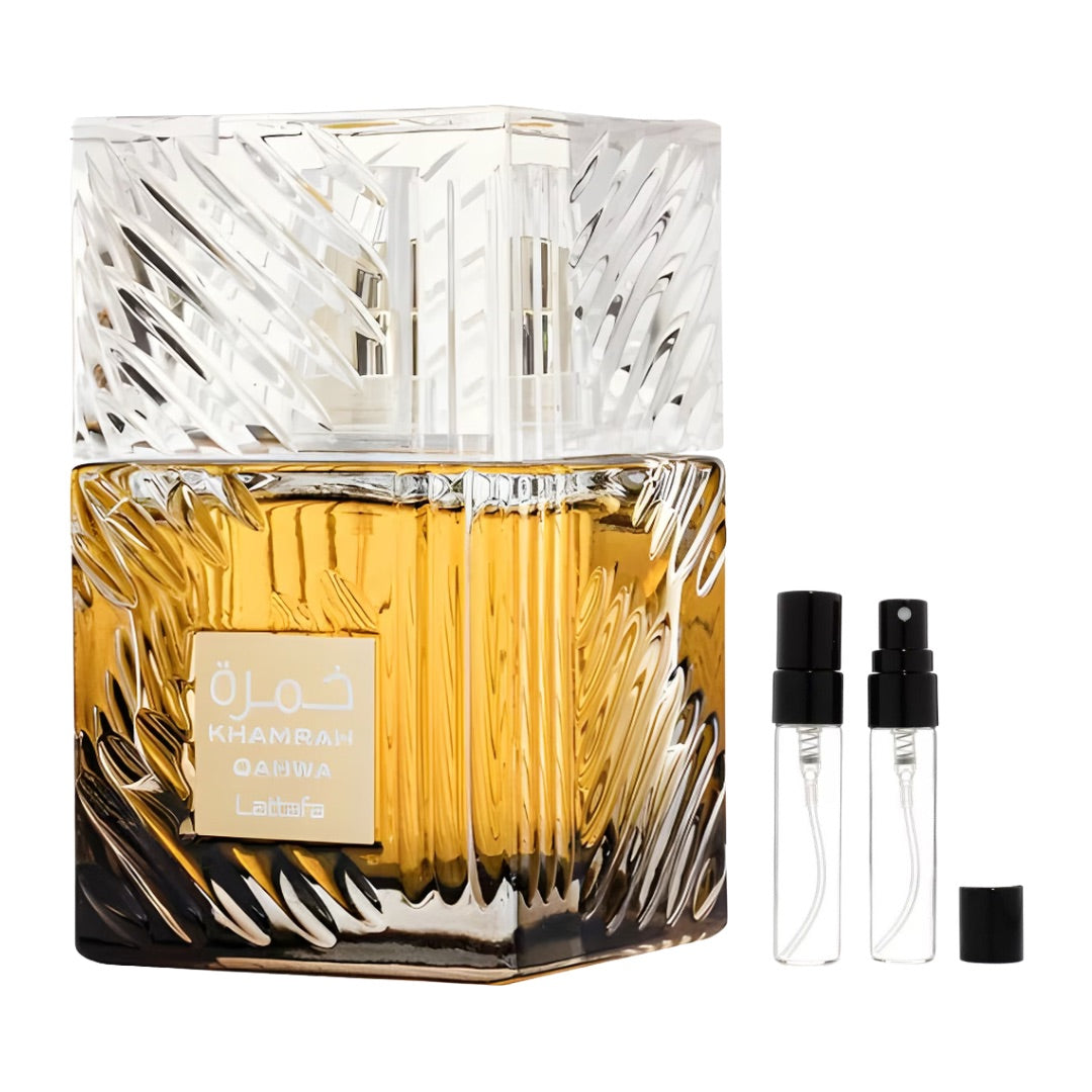 Indulge in the luxurious scent of Khamrah Qahwa Lattafa:Decant. Available in 5ML or 10ML fragrances, this captivating scent will leave you feeling elegant and sophisticated. Perfect for those seeking a unique and high-quality fragrance experience without breaking the bank.