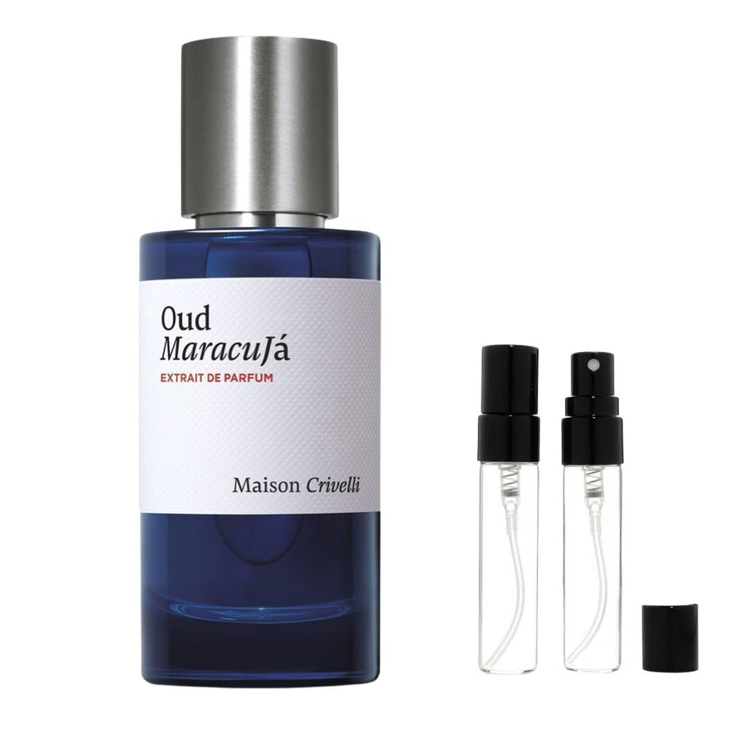 Discover the exquisite Oud Maracuja Maison Crivelli fragrance in mini decant sizes ranging from 2ML to 10ML. Experience the unique and captivating blend of scents, including notes of oud and maracuj?. Perfect for on-the-go use or for trying out a new scent before committing to a full bottle.