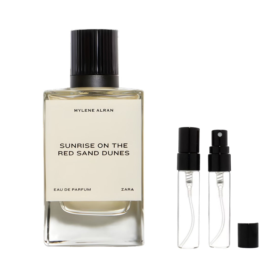 Experience a refreshing and invigorating scent with Sunrise On The Red Sand Dunes by Zara. This new Citrus Aromatic fragrance, created by expert perfumer Myle?ne Alran, features top notes of Bergamot and Ginger, middle notes of Mandarin Orange, Orange Blossom and Cassis, and a base of Musk and Amber. Available in 2ML to 10ML sizes.
